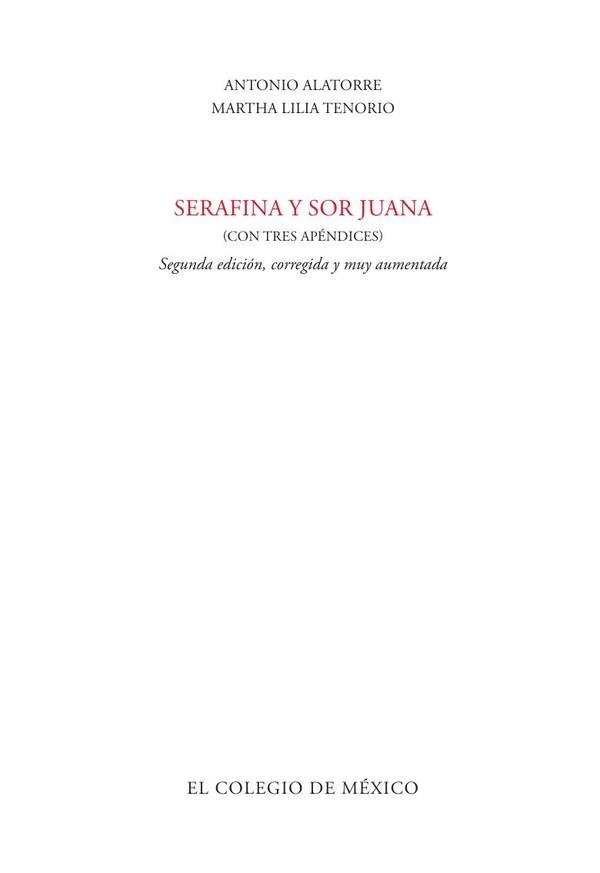 Antonio Alatorre tenía una virtud: someter a revisión y crítica constantes sus trabajos, publicados o inéditos. De 1998 a meses antes de su muerte (en octubre de 2010) siguió anotando, revisando y corrigiendo el libro Serafina y sor Juana, según iban apareciendo hallazgos y nuevas informaciones; al mismo tiempo iba sometiendo a relectura la Carta de Serafina de Cristo a la luz de esas novedades. Inexorable e incansablemente, los márgenes del libro se fueron llenando de anotaciones: arriba, abajo, derecha, izquierda; páginas enteras tapizadas con su letra menuda y clara. El volumen se fue haciendo cada vez más abultado por hojas completas dobladas y por un montón de papeles, papelitos, escritos a renglón seguido, a mano o a máquina, con múltiples adiciones que precisaban, mejoraban o corregía lo dicho en 1998. Este trabajo no podía y no debía permanecer a la sombra. El sorjunismo debe conocer el compromiso inquebrantable de Alatorre por tratar de aclarar las zonas más imprecisas de la vida y obra de sor Juana. Así pues, se presenta aquí reunido todo aquello que estaba suelto y se hace realidad esta nueva edición de Serafina y sor Juana, como anuncia el título «corregida y muy aumentada».